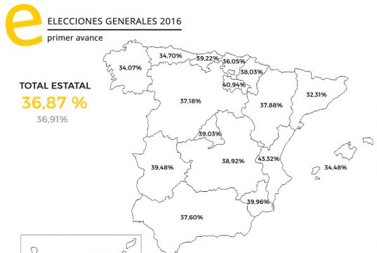 GRÁFICO: Mapa de Participación hasta las 14:00 por Comunidades Autónomas